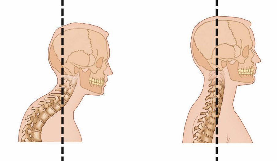 Labai dažnai senėjimo procesas prasideda nuo kaklo. Be to, problema ne tik pačioje odoje, kurioje beveik nėra poodinių riebalų ląstelių. Pagrindinė problema yra stuburo srities kaklo būklė. Su amžiumi septyni kaklo slanksteliai sudaro pernelyg didelį išlinkimą į priekį (hiperlordozę), tai aiškiai parodyta paveikslėlyje Nr.9. Šis procesas sutrumpina kaklą ir suformuoja gumbą virš 7 kaklo slanksteliu, dėl ko yra sutrikdoma kraujotaka ir vėliau, kaip pasekmė, veido oda sensta.